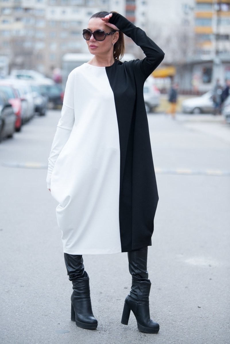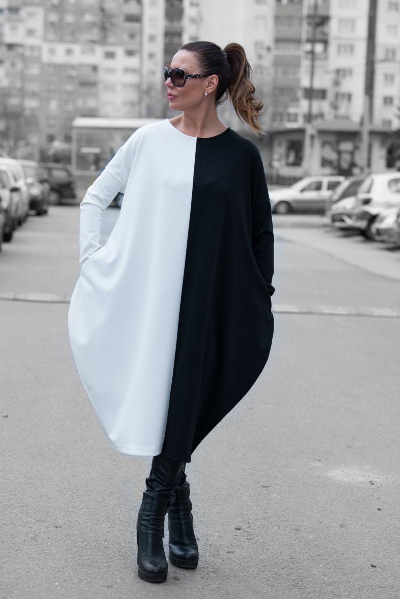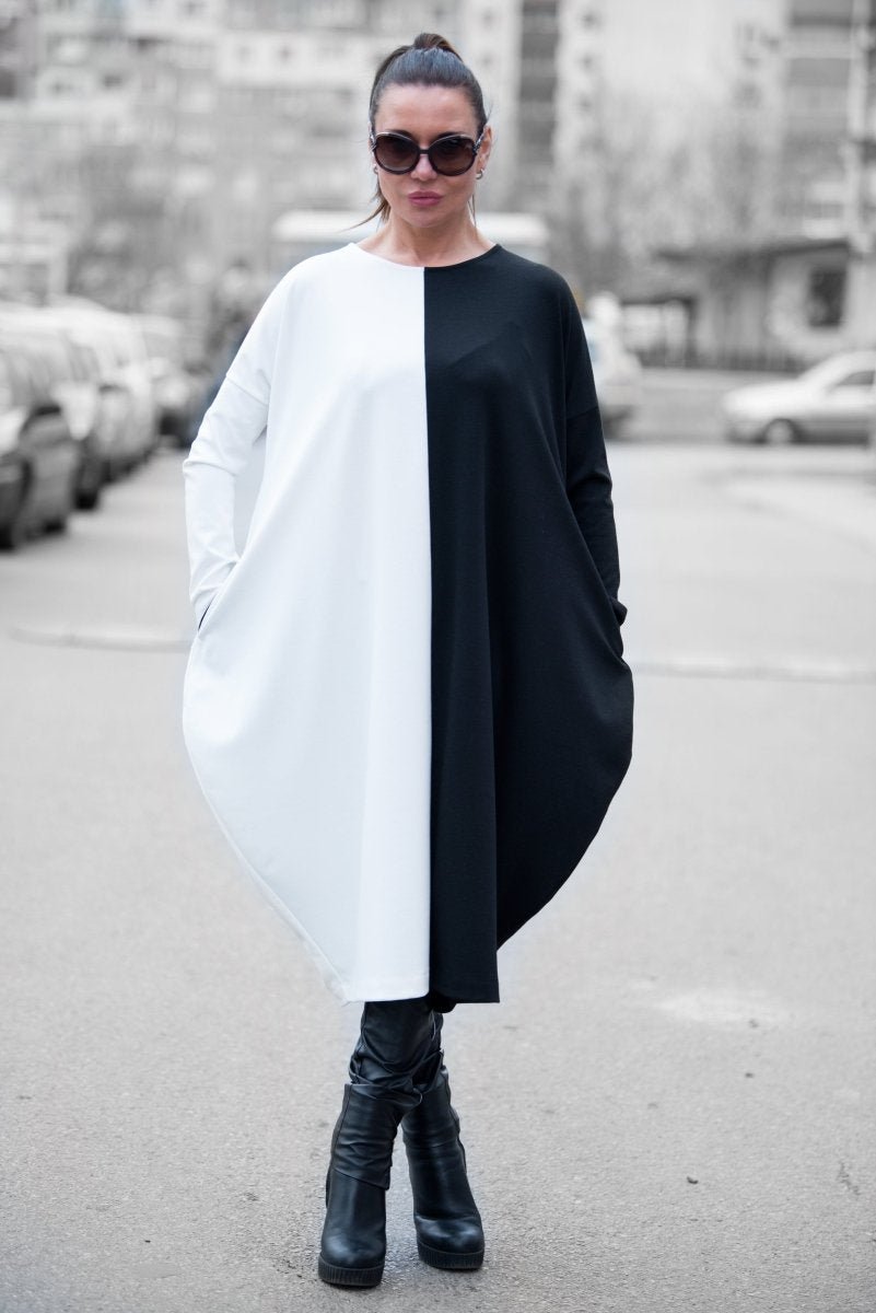Upgrade your wardrobe with the Black & White Cotton Tunic-Dress. This versatile piece combines comfort and style, making it a must-have for the season.