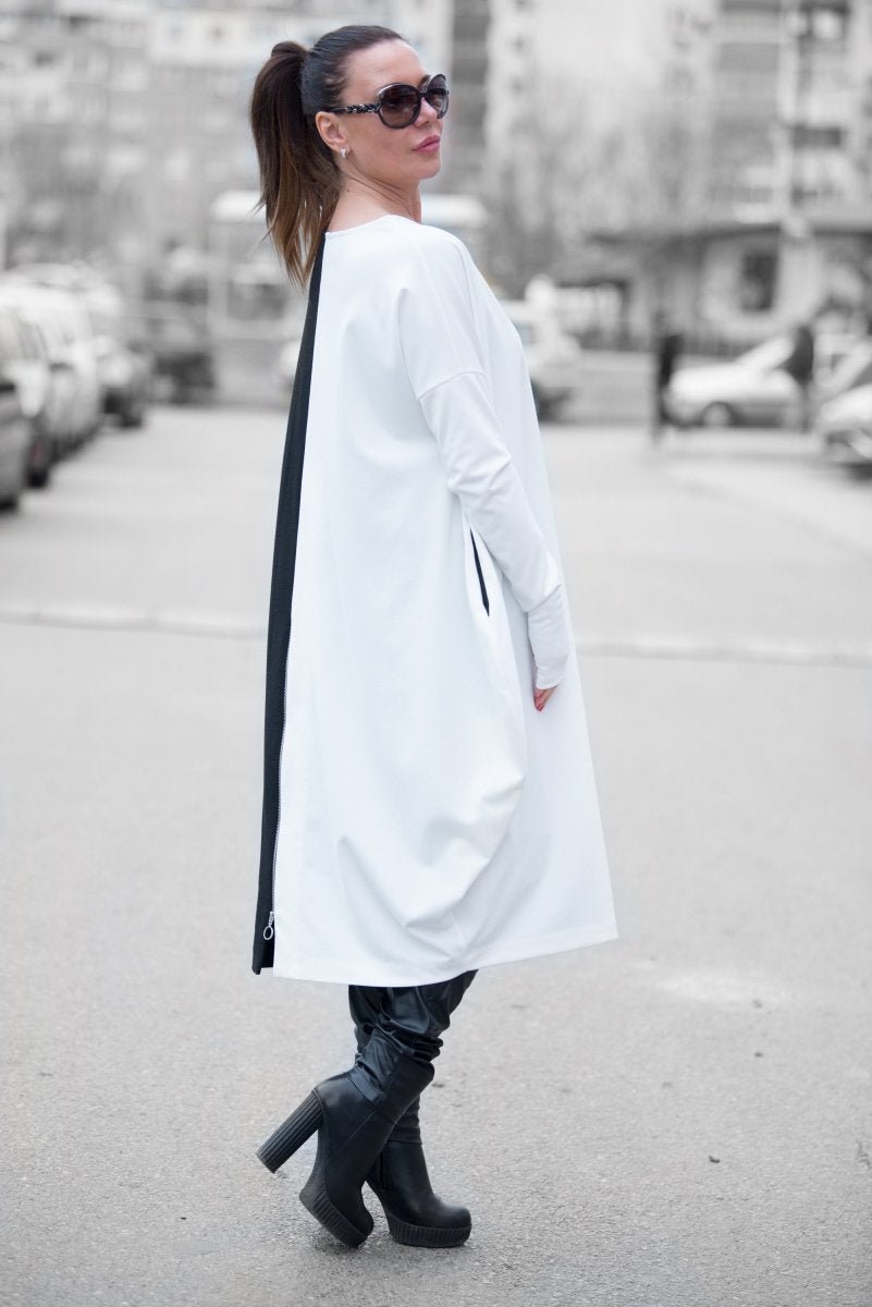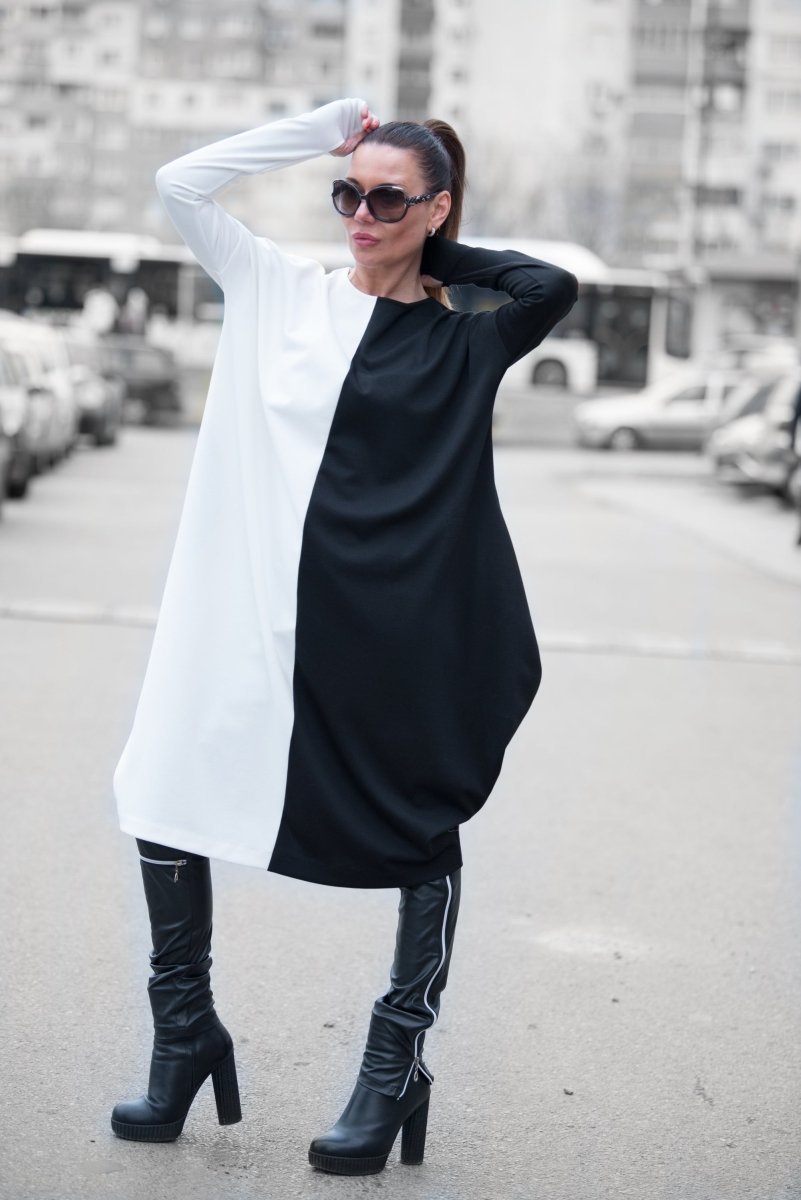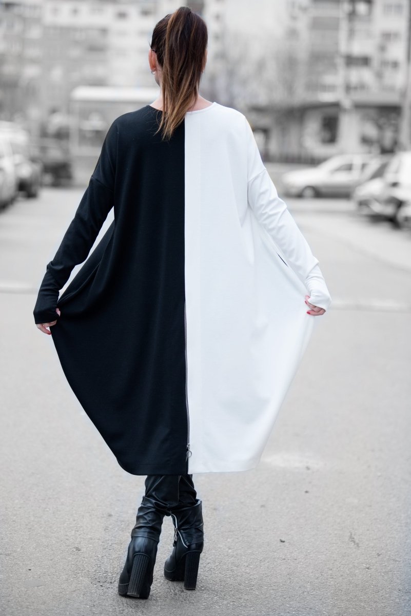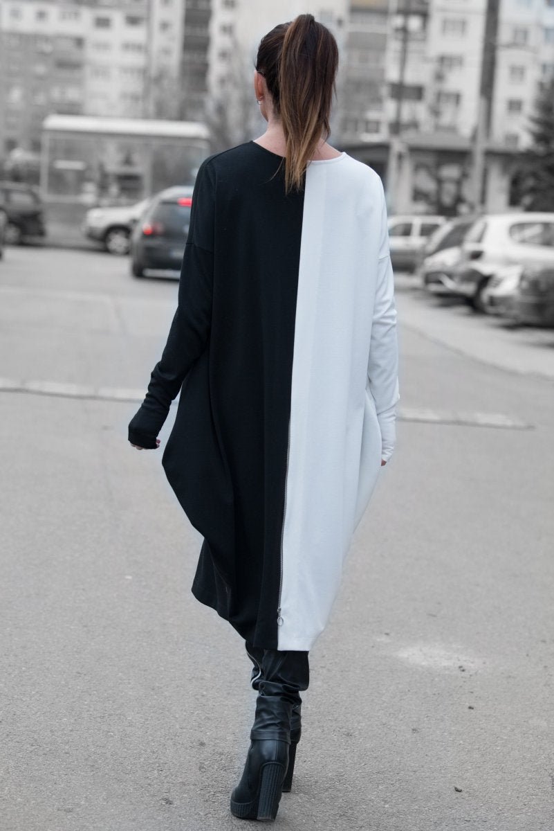 Upgrade your wardrobe with the Black & White Cotton Tunic-Dress. This versatile piece combines comfort and style, making it a must-have for the season.